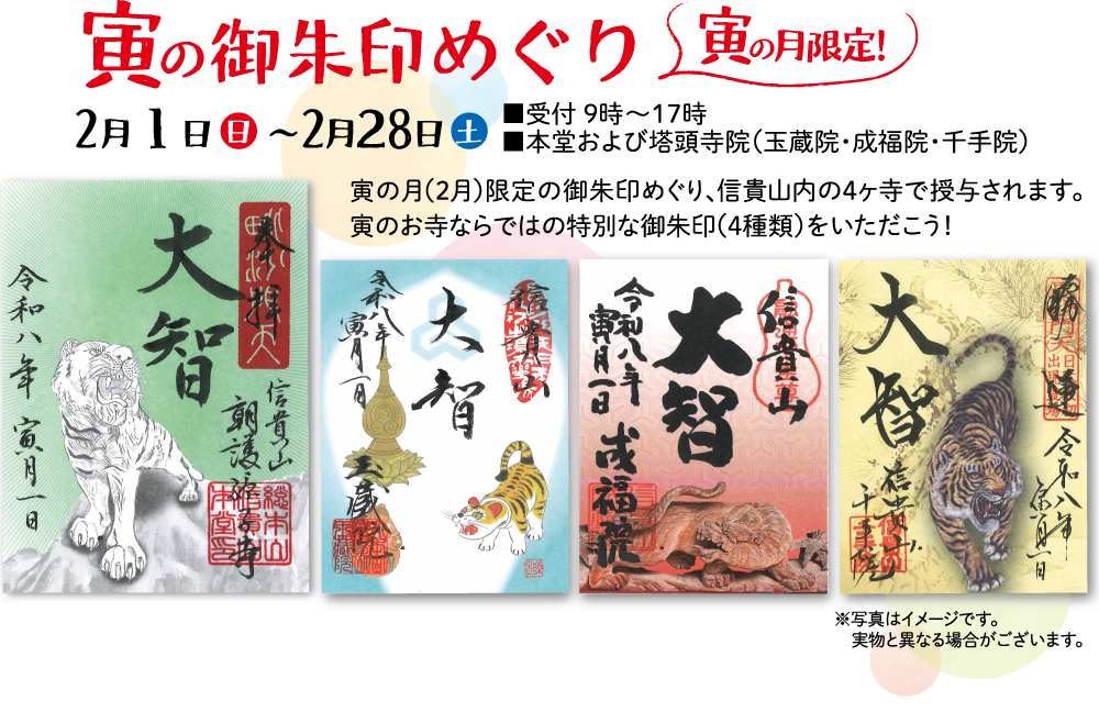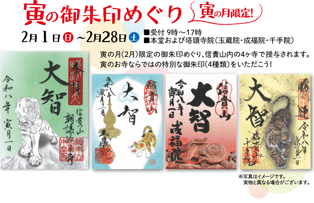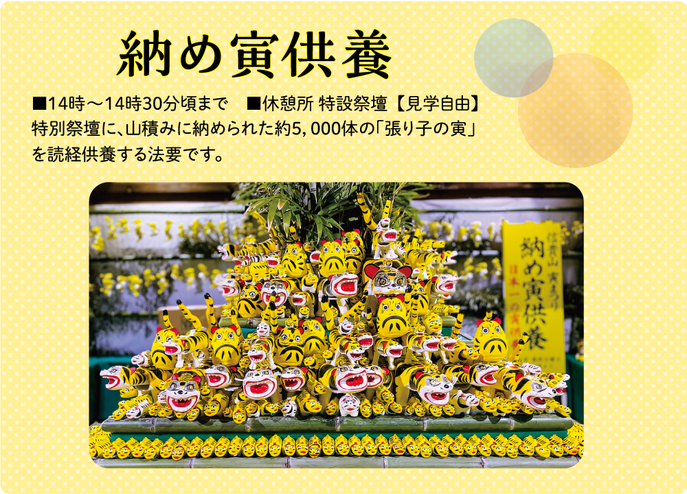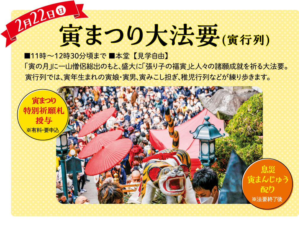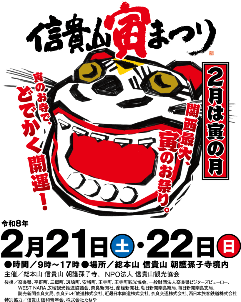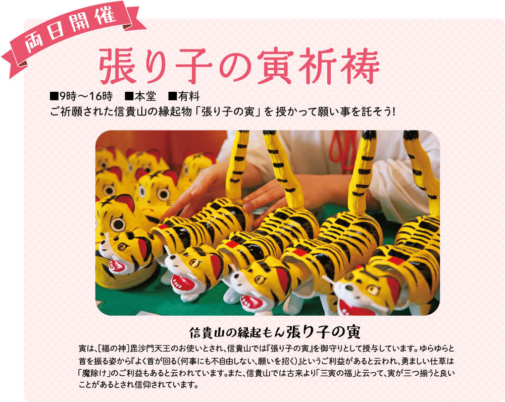 信貴山では古来より「寅」のご縁日にお参りをするとたいへん厚い御利益を授かると信仰されています。