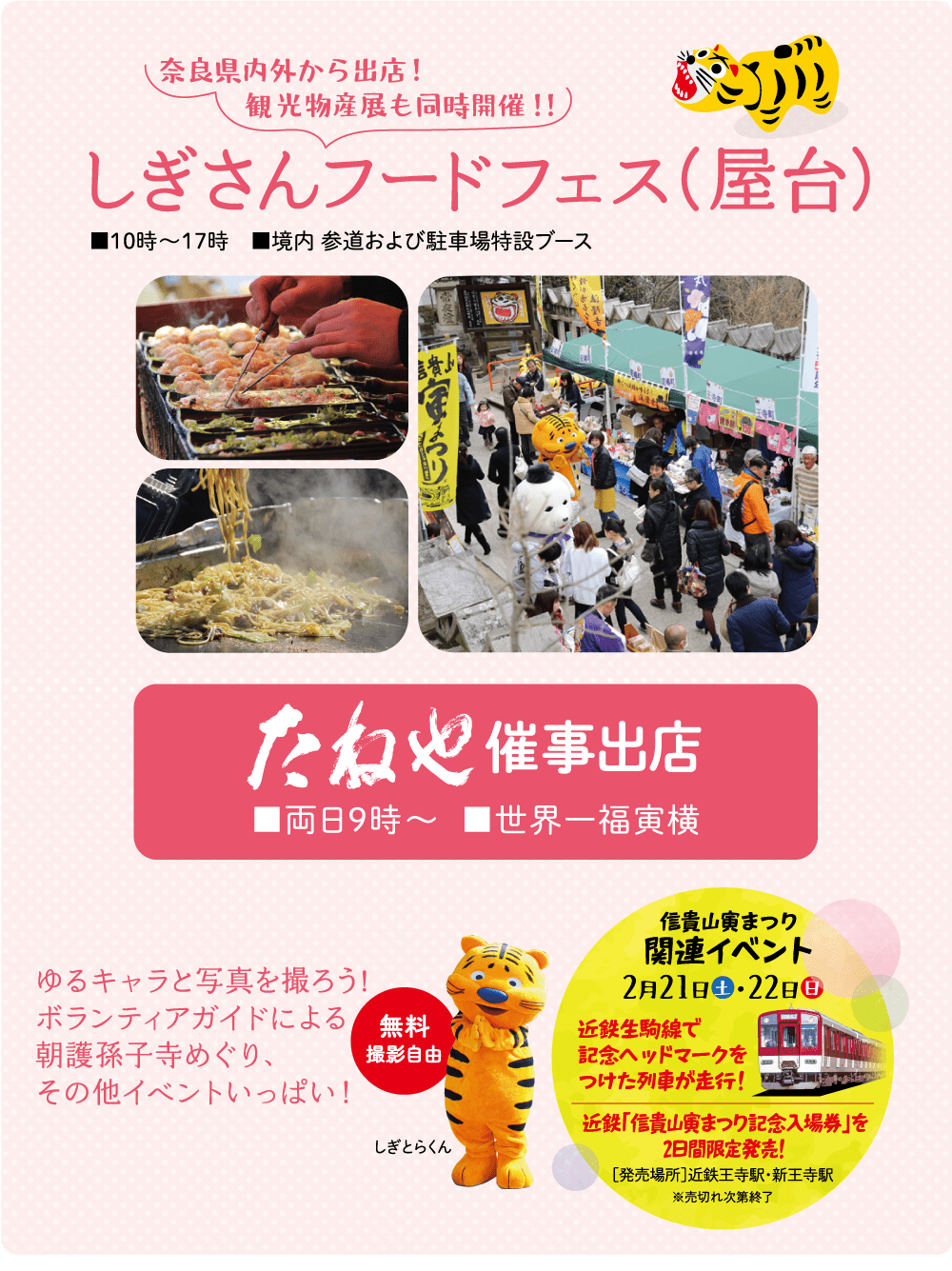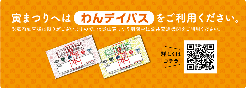 ※境内駐車場は限りがございますので、信貴山寅まつり期間中は公共交通機関をご利用ください。